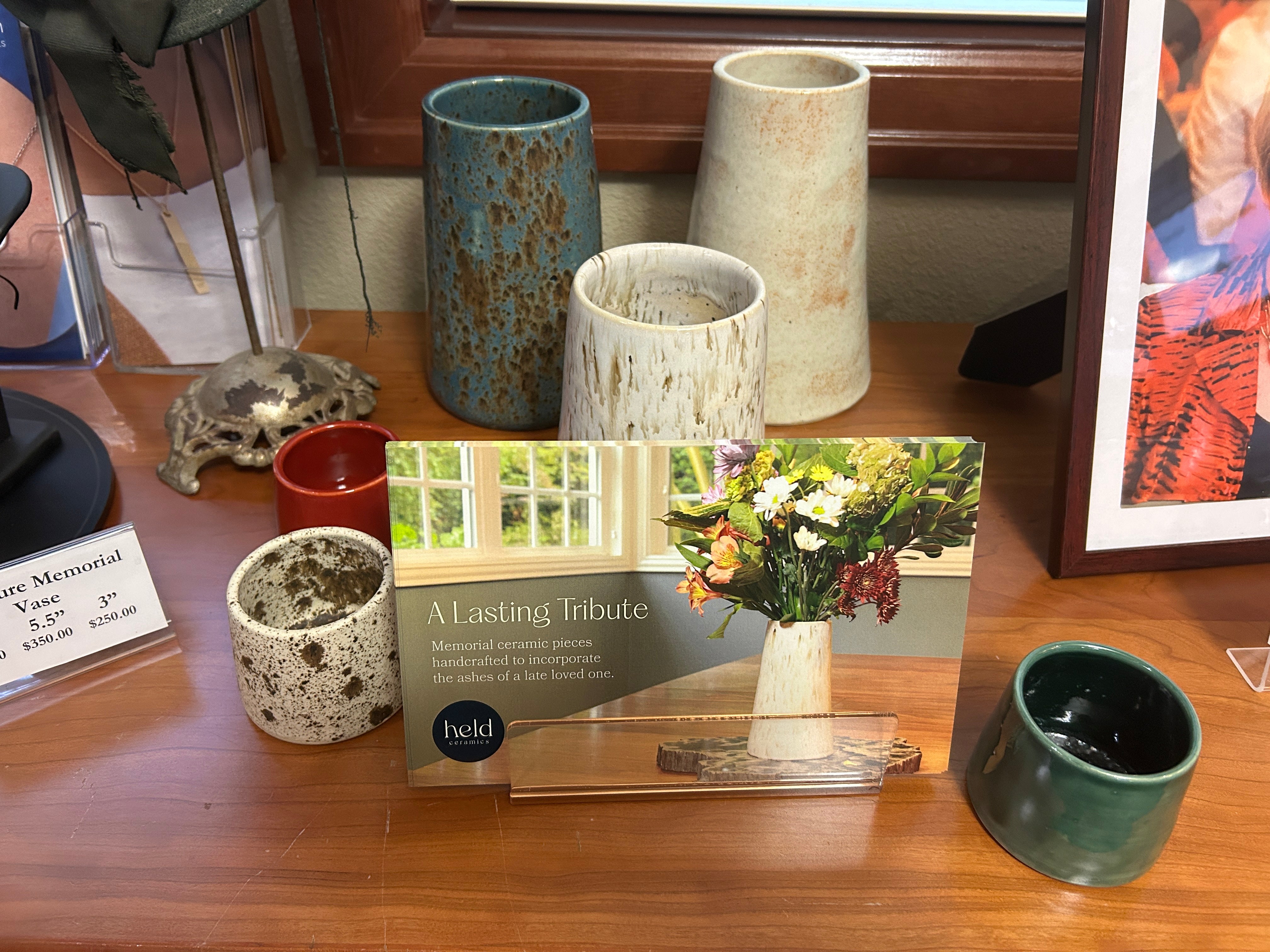 Families increasingly seek memorial options that feel personal, modern, and emotionally resonant. By offering our ceramic memorials in-house, funeral homes can meet this need while creating an additional revenue stream. These pieces are display ready, easy to explain, and provide families with a tangible way to remember their loved one beyond the service itself. The result is a more complete experience for families and a thoughtful expansion of your offerings.